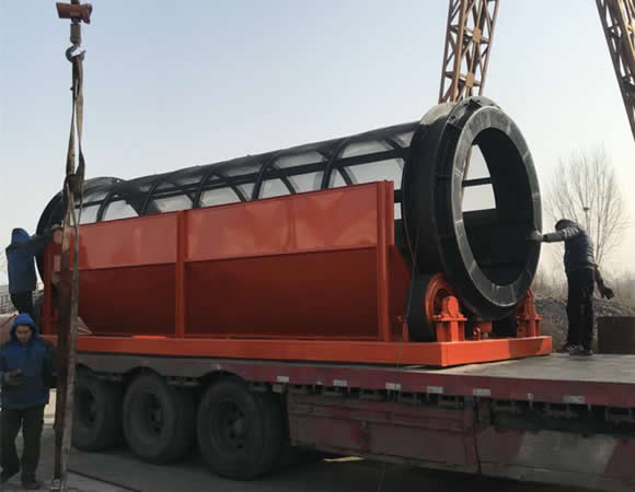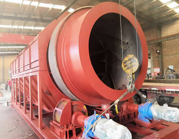 重型滾筒篩工作原理 電機驅動滾筒軸線作旋轉運動,減速機調節筒體以一定的