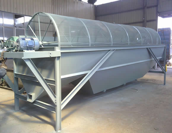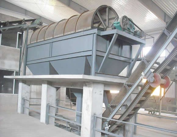 分級除雜滾筒篩: 滾筒篩整個設(shè)備有儲料倉、滾筒篩分機和皮帶輸送機組成。物料由裝載機裝入儲料倉,然后進(jìn)入滾筒篩,旋轉(zhuǎn)的篩筒帶動物料在篩筒內(nèi)翻滾,從一端向另一端移動,小于設(shè)定(網(wǎng)眼)的物料由篩網(wǎng)漏出進(jìn)入皮帶機,然后由皮帶輸送機匯集從另一端卸出,大于網(wǎng)眼的廢料部分從篩網(wǎng)另一端排出,整個過程連續(xù),物料分級準(zhǔn)確,滾筒篩由電機、減速機、驅(qū)動聯(lián)軸器、軸承支座和篩籠等組成。