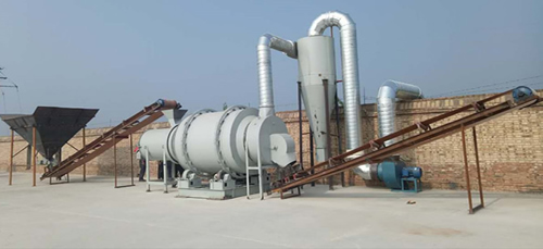 在筒體內的石英砂會被內部安裝的擋板,統稱揚料板揚起,由于揚料板設計的形式多樣,石英砂會在不同的高度被揚起,形成錯落的石英砂流,高溫氣流就從其中穿過,增加了與石英砂的接觸時間和接觸面,使內部的水分干燥更快,如此反復循環幾個回合之后,石英砂與水分徹底分離,水分受熱在筒體的頂部被風機抽出,干燥的石英砂則從下料口出料。被抽出的高濕氣體種會含有一些石英砂粉末顆粒,排放到環境種會用污染,一般需要經過旋風除塵器過濾下即可。