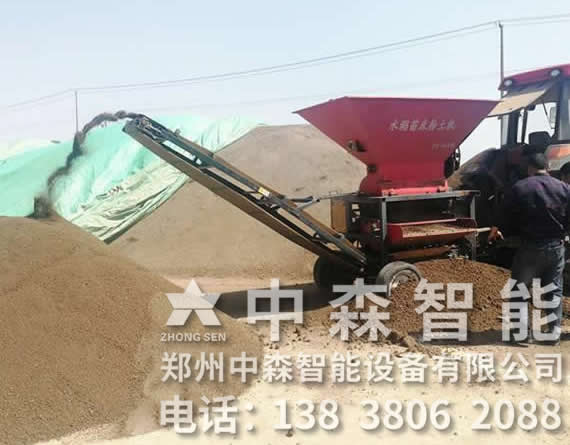 2.機器的工作效率超高,土質水分不超過百分之三十以上的,每小時粉土可達到20-50立方米。此機器無論喂入土質的水分有多大,均可工作,干土.濕土.凍土均可工作。